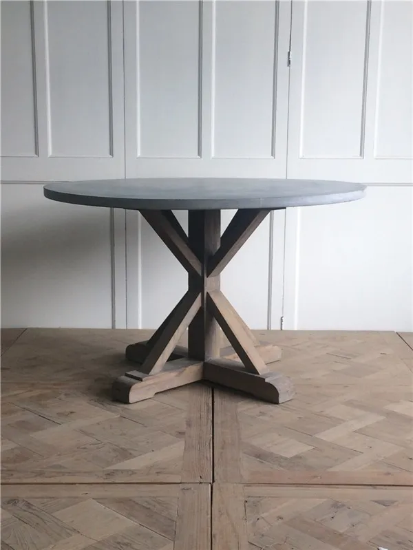 Make the concrete form (mold) using the countertop. Fiber reinforced natural concrete steel base read more. It's contract grade, so you know it's built to last. These concrete table tops are not very heavy because they are 1 thick throughout with a 2 apron edge. Great indoors or out — cover or store indoors during inclement weather and when not in use. Round concrete table with hardwood base indoor outdoor. A concrete top dining table round set will also always be a nice accent piece to any room. More buying choices $260.51 (15 new offers) Safavieh babette indoor/outdoor concrete console table in dark grey. Abbott indoor/outdoor 84 concrete & fsc® acacia dining table $ 2,299. Reclaimed distressed round dining table. Attach a scrap piece of plywood to the centre hole. 43w x 43d x 30h materials: